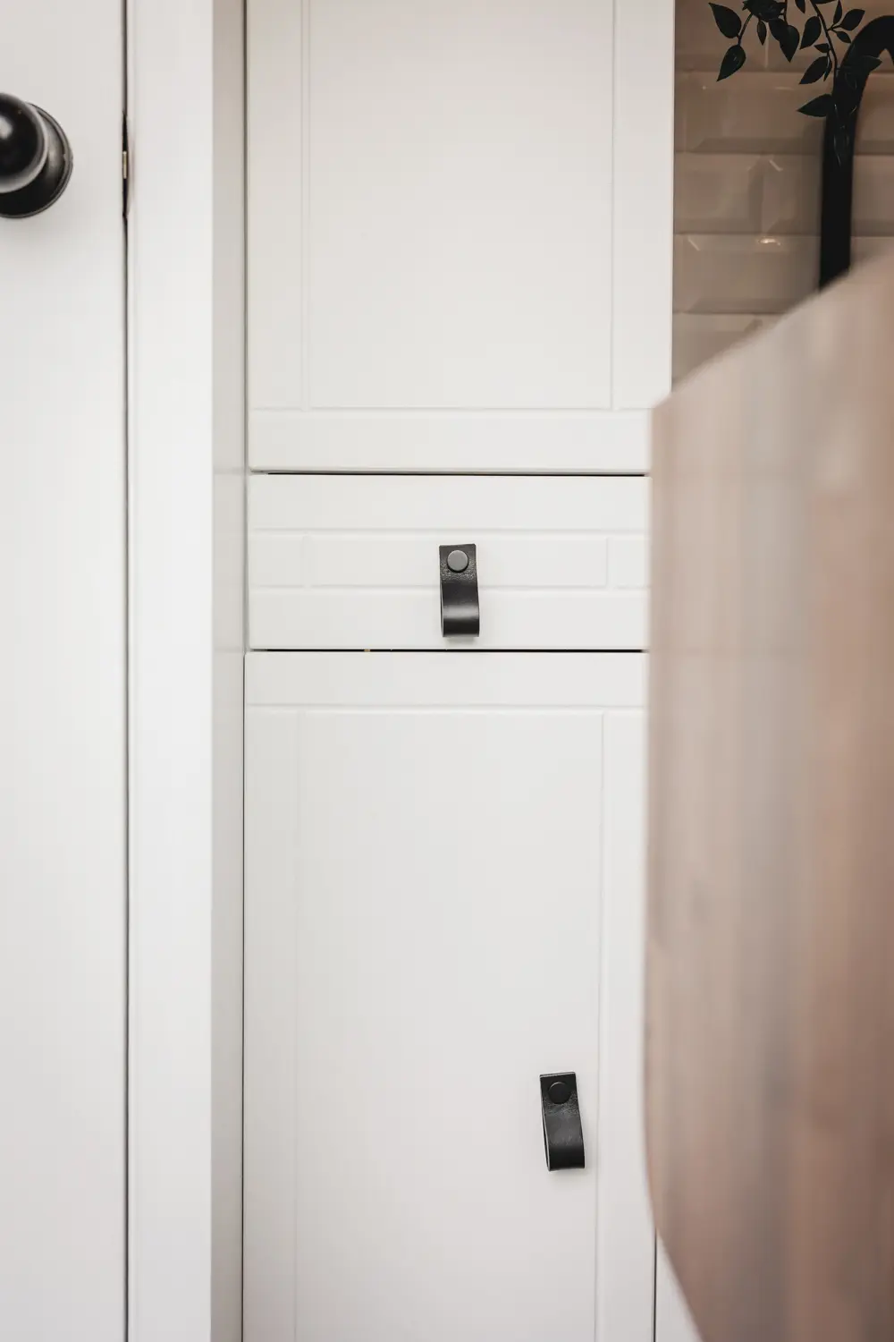 - Full height pantry next to the shower room with space for a bin at the base and cutlery drawer