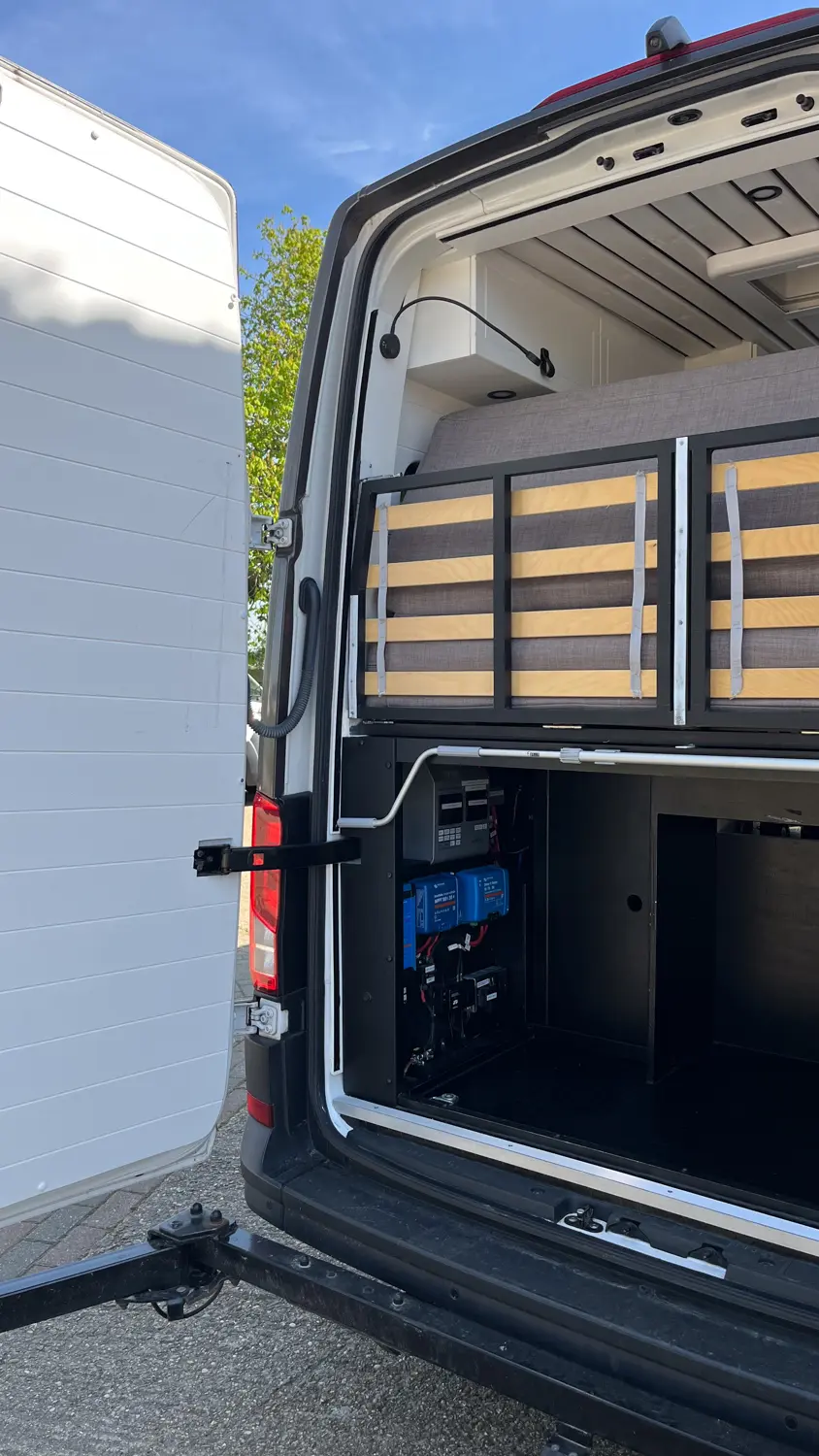 - Solar power from a 375w flexible solar panel and 30Amp MPPT for off-grid travel
