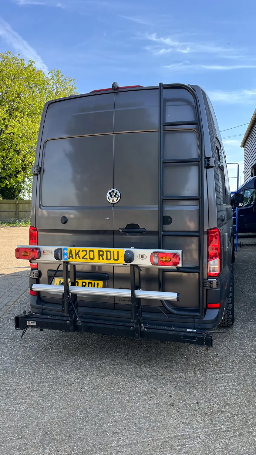 Originally built with a spare wheel carrier, it was removed by the current owners to install a tow bar-mounted bike rack. Both configurations are available.